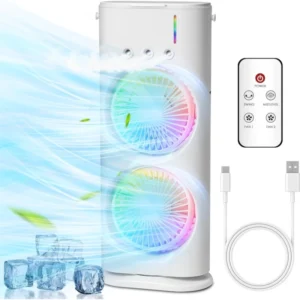 پنکه مه پاش رومیزی شارژی دو فن بهمراه ریموت کنترل و قابلیت چرخش خودکار | اورجینال