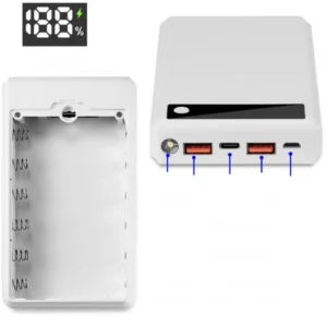 کیس پاوربانک فست شارژ Q6 شش باتری 18650 رنگ سفید با LCD و چراغ قوه