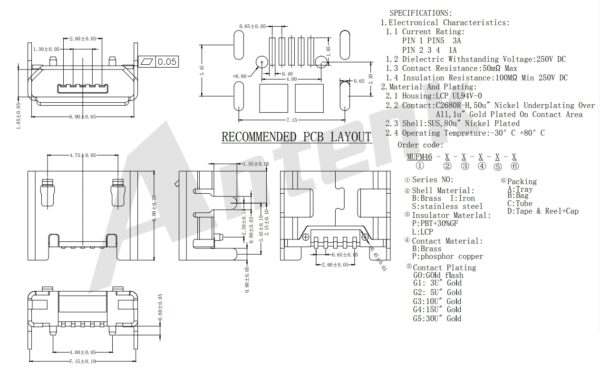 برای طراحی دقیق فوتپرینت این کانکتور در نرمافزارهای PCB مانند Altium Designer یا Kicad، میتوانید از تصویر زیر استفاده کنید.