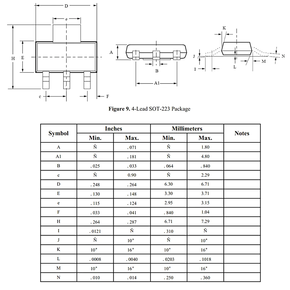 - پکیج استاندارد SOT-223 مناسب برای نصب سطحی (SMD/SMT)