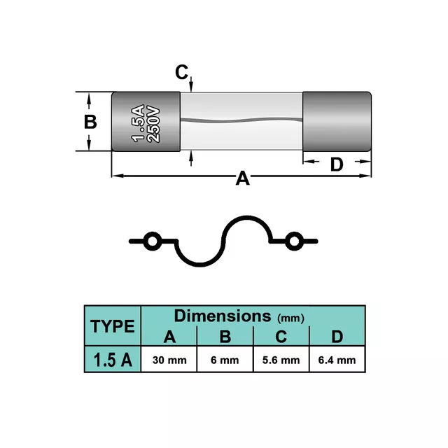 مشخصات فنی فیوز شیشهای 1.5 آمپر