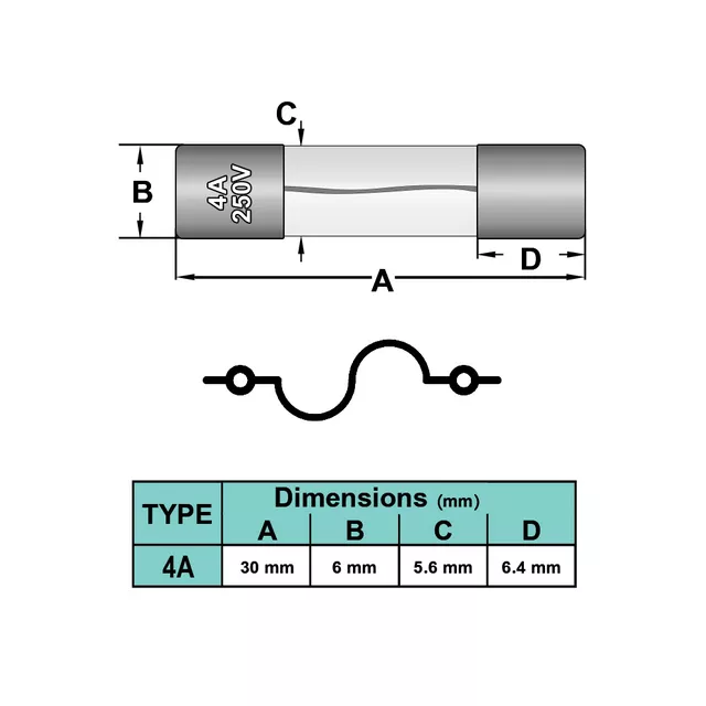 مشخصات فنی فیوز شیشهای 4 آمپر