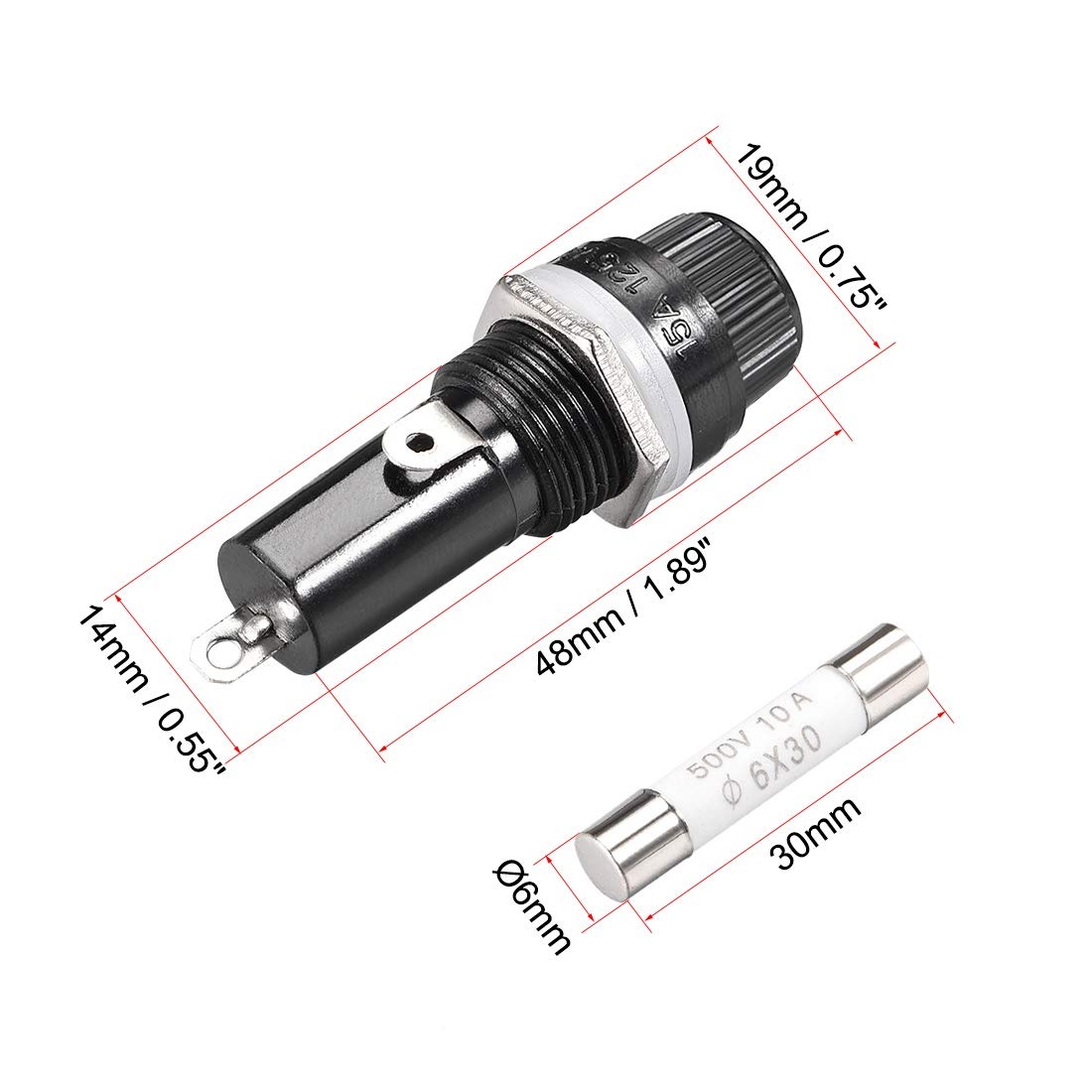 - ابعاد استاندارد و جای فیوز کوچک 30 × 6 میلیمتر