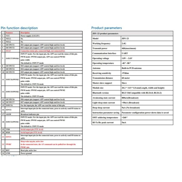 مشخصات فنی ماژول بلوتوث نسخه 5 | JDY-23