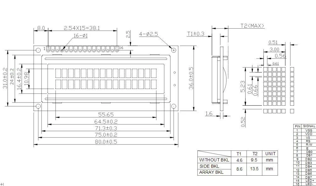نمایشگر LCD کاراکتری 2×16 با بک لایت سفید از نوع تکرنگ بوده و قابلیت نمایش ۲ سطر با ۱۶ کاراکتر در هر سطر را دارد.