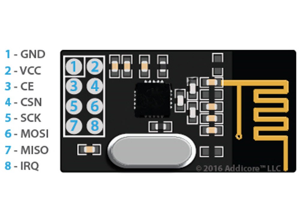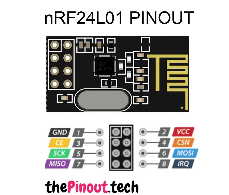 نسخه استاندارد NRF24L01 توسط شرکت Nordic Semiconductor طراحی شده و با فرکانس کاری 2.4GHz و سرعت انتقال تا 2Mbps، امکان برقراری ارتباط مطمئن و سریع بین بردهای آردوینو، ESP32، STM32 و Raspberry Pi را فراهم می‌کند.