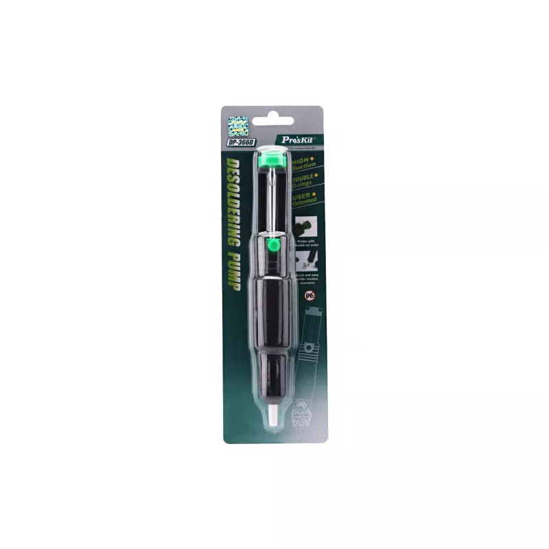 قلعکش دستی پروسکیت Pro’sKit مدل DP-366D یکی از ابزارهای حرفهای و باکیفیت برای تعمیر، تعویض و بازکاری قطعات الکترونیکی بر روی بردهای PCB است. این ابزار با قدرت مکش بالا و طراحی دقیق، امکان پاکسازی سریع و تمیز قلع اضافی را فراهم میکند و انتخابی ایدهآل برای تعمیرکاران حرفهای و نیمهحرفهای محسوب میشود.