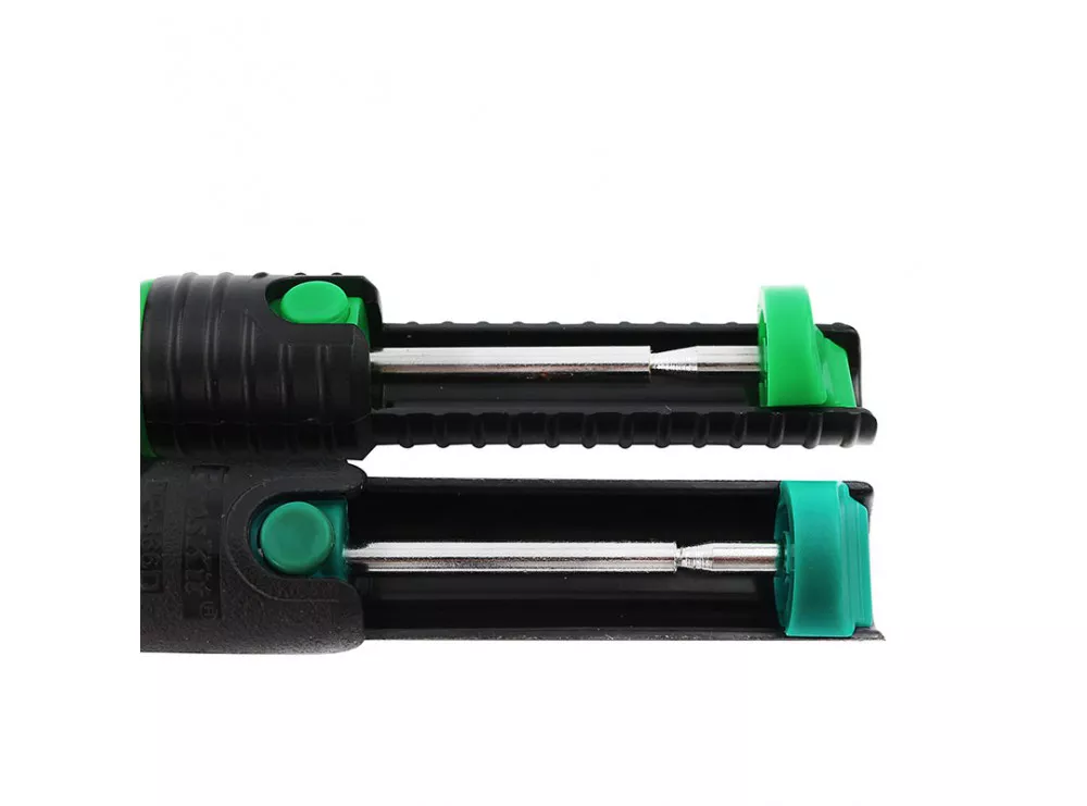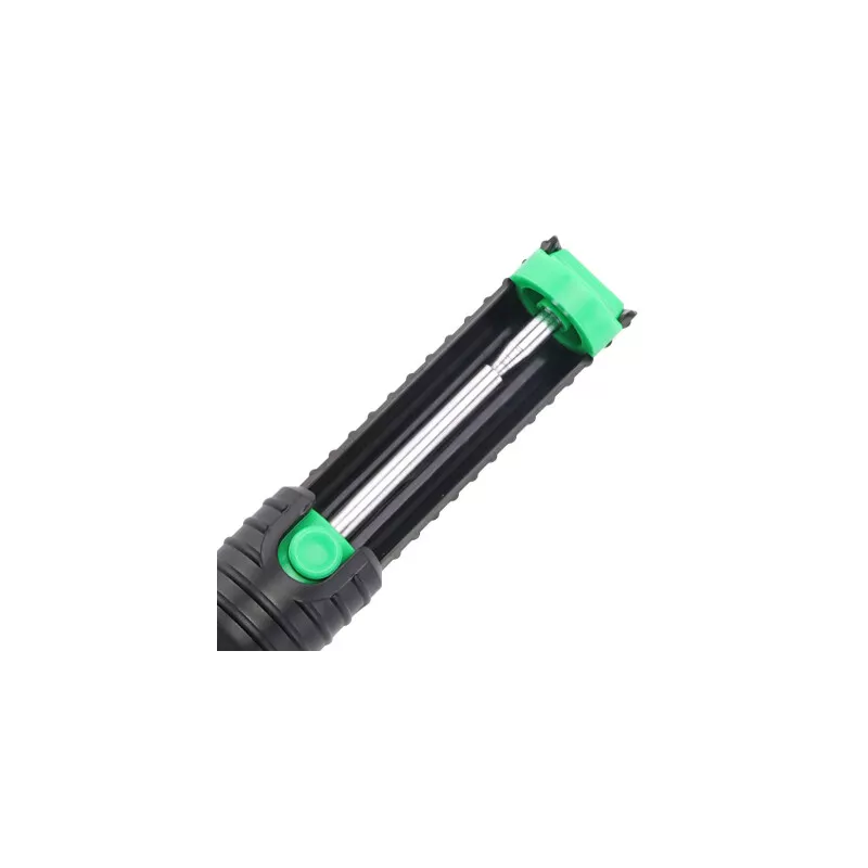 قلعکش دستی پروسکیت Pro’sKit مجهز به پیستون فنری قدرتمند با دو آببند روغنی است که از هرگونه نشتی هوا جلوگیری کرده و حداکثر مکش 32 سانتیمتر جیوه (32cm-Hg) را ایجاد میکند. این ویژگی باعث میشود قلع مذاب بهسرعت و بهصورت کامل از محل لحیم جمعآوری شود و آسیب به پدها و مسیرهای برد به حداقل برسد.
