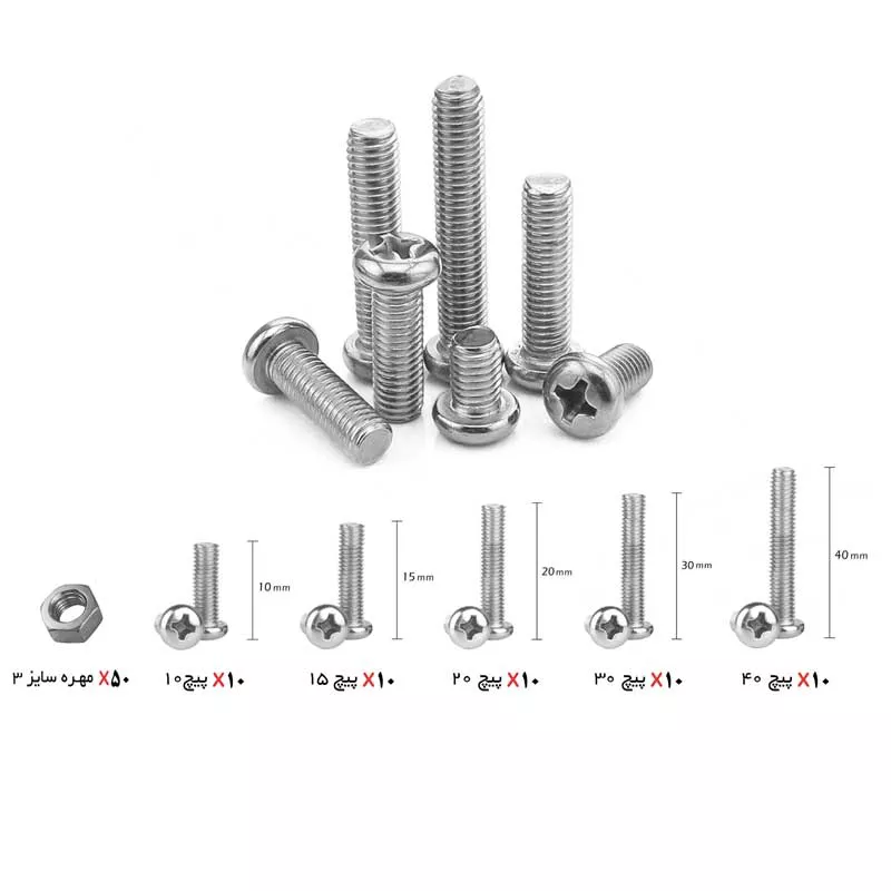 ویژگیهای اصلی بسته 50 عددی پیچ و مهره سایز 3