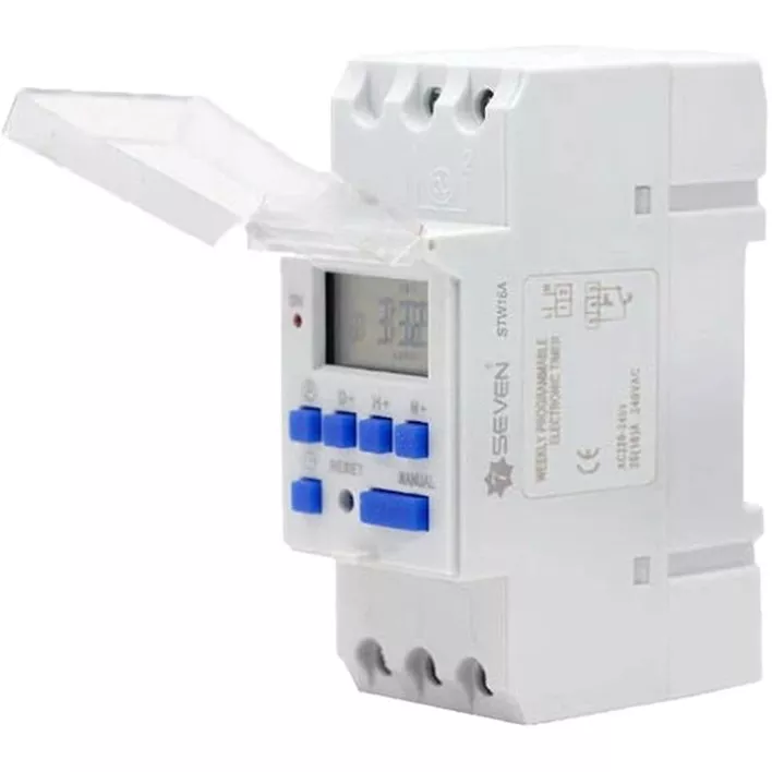 این تایمر دین ریل معرفی شده توسط تسلا شاپ در اصل به عنوان یک واسطه عمل نموده و بین سیم کشی دستگاه مورد نظر و جریان برق قرار گرفته و طبق تنظیمات شما در زمانهای معین شده برق آن وسیله را قطع یا وصل می کند.