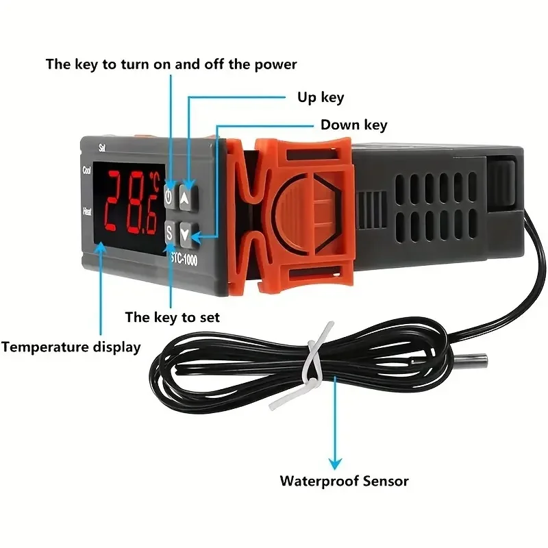 بدنه ترموستات STC-1000 از پلاستیک ABS مقاوم در برابر حرارت و شعله ساخته شده است که ایمنی و دوام بالایی را در محیطهای صنعتی و نیمهصنعتی تضمین میکند. طراحی فشرده و پنلی این دستگاه باعث میشود نصب آن روی تابلوهای برق، جعبههای کنترلی و پنلهای صنعتی بهسادگی انجام شود.