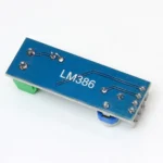 تراشه LM386 یک تقویتکننده صوتی مونو با بهره داخلی قابل تنظیم است. این آیسی میتواند سیگنالهای صوتی با سطح پایین (مانند خروجی میکروفون یا جک صدا) را تا ۲۰۰ برابر تقویت کند. بهره پیشفرض ۲۰ است و با افزودن یک خازن بین پایههای 1 و 8 میتوان آن را افزایش داد. ماژول معمولاً دارای ورودی سیگنال، خروجی اسپیکر و ولتاژ تغذیه 5 ولت است.